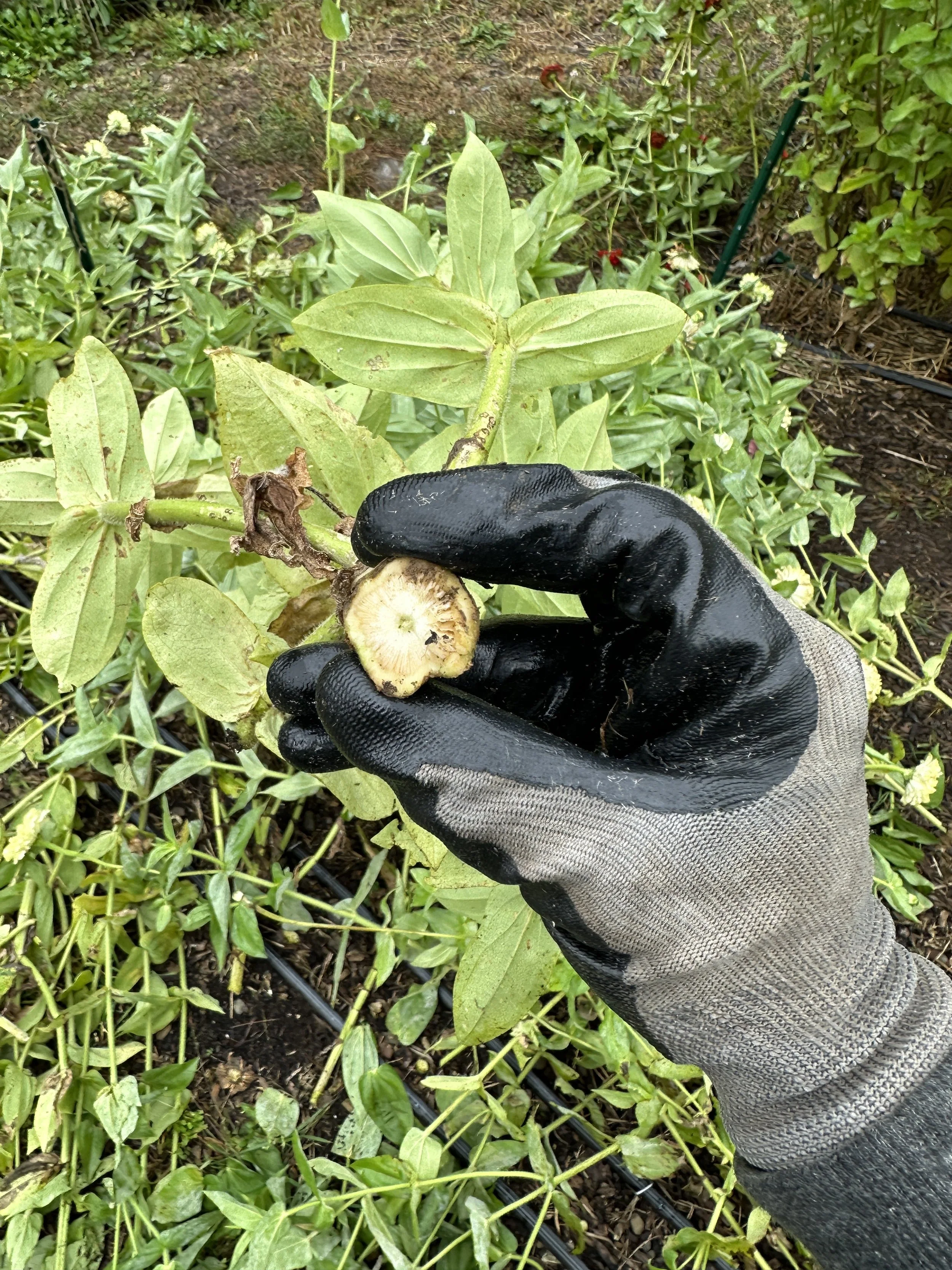 Mulching with zinnias