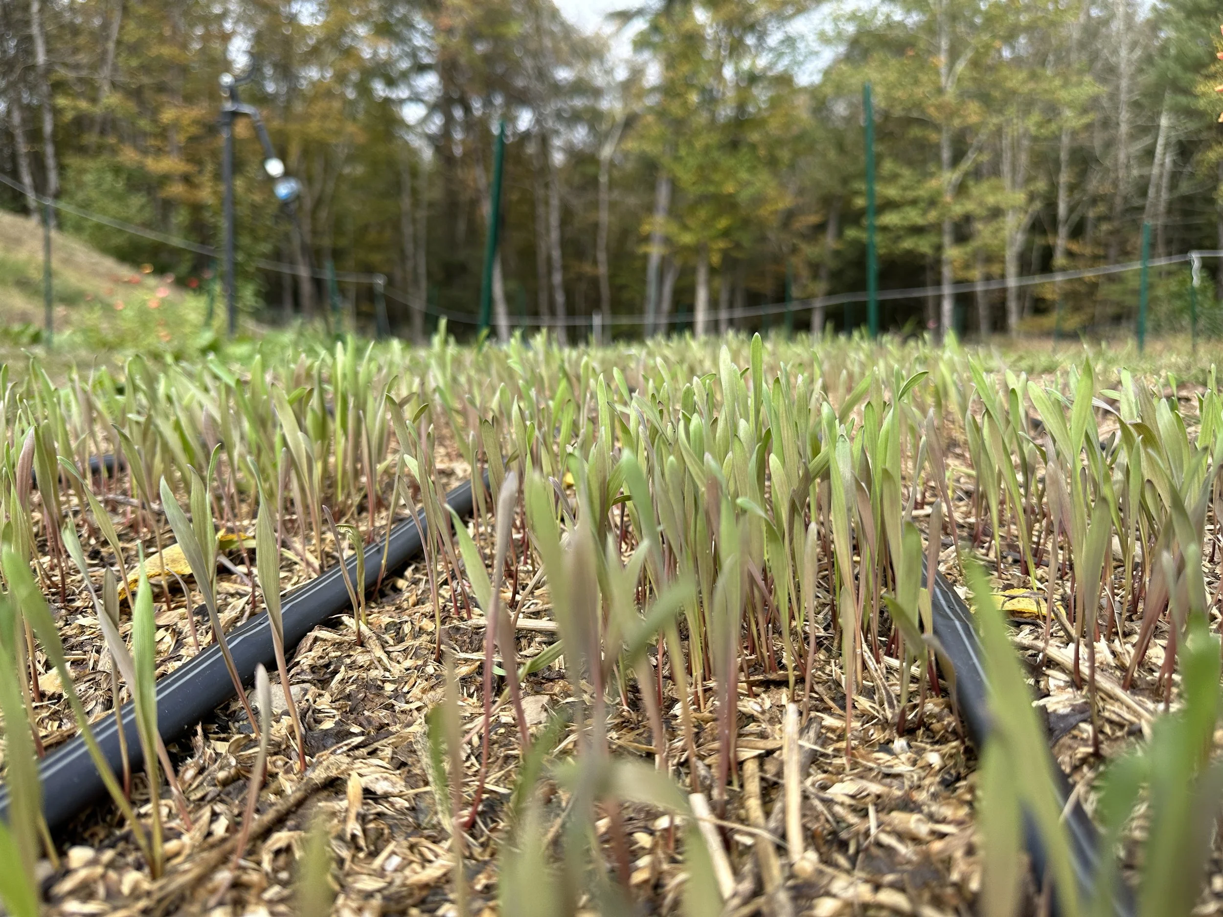 As it turns out, it was the perfect much to lay down on top of the winter rye cover crop. For the first few weeks as the rye was popping up in the beds the mulch was thick, soft and fluffy. After about 3 weeks of drying out, and then some rain storms, the zinnia mulch did something unexpected: it created a weed mat. The fibers and small bits locked together as they dried and shrank to make a really wonderful weed barrier.